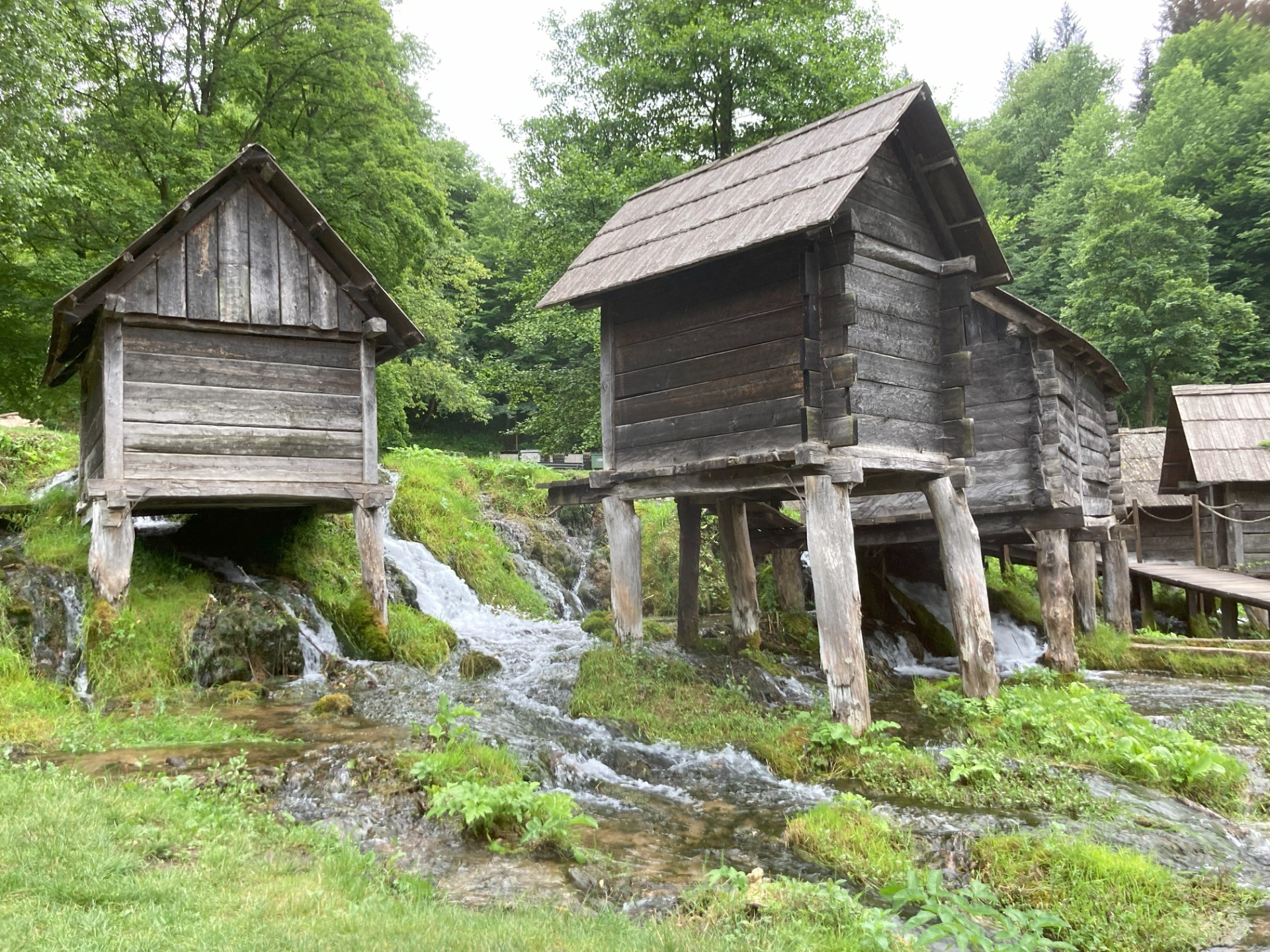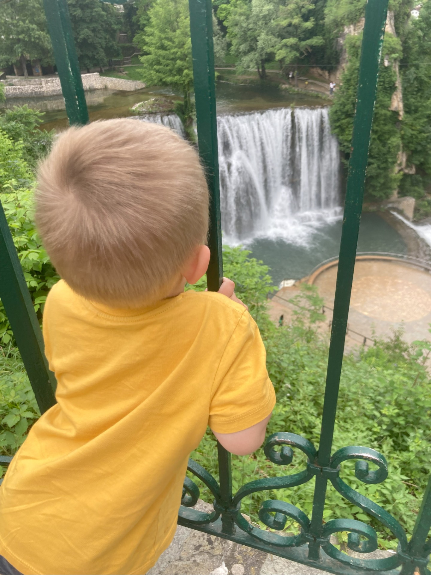 Z Jajce jsme malinko popojeli k Mlynčići a Plivskému jezeru. Tam jsme zaparkovali už přímo v kempu. Opravdu veliký kemp s dobrým zázemím, hodně sprch, toalet, společenská místnost, wifi (6€ dospělí, 2,5€ děti, 6€ stan; https://jajcetours.com/en/camping-plivsko-jezero). Je hned kousek od samotných starých mlýnů neboli Mlynčići. Po lávkách mezi dřevěnými domečky mohli děti volně pobíhat, objevovat. Dřevěnými lávky se dá dostat parkem až k samotnému Plivskému jezeru. To je nádherně čisté a zrcadlí se v něm zelené kopečky. My jsme si procházku prodloužili podél jezera až k baru "Lake house" – eklektická směs všemožných stolečků a židliček nás ale všechny pobavila a bavila i děti (3kolky, houpačky). U baru se dají případně půjčit lodičky na plavbu jezerem. Cesta zpátky uběhla rychle, že se děti těšily na prolézačky. Jedny jsou na louce před samotnými Mlynčići, další naproti v lesíku. U Plivského jazera teda úplna Pohoda..Pivo..Prolézačky :D
